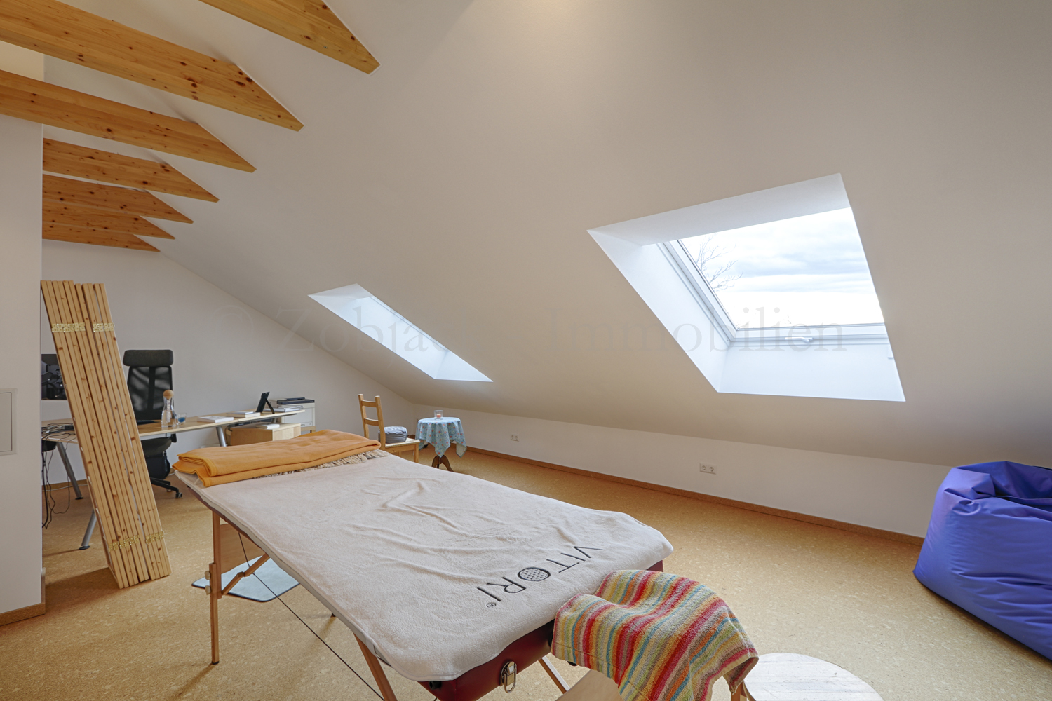 Das Dachgeschoss bietet ein großzügiges Dachstudio mit vielseitigen Nutzungsmöglichkeiten – ob als Hobbyraum, Gästebereich oder weiteres Arbeitszimmer. Ein separater Abstellraum schafft praktischen Stauraum für alles, was im Alltag Platz braucht.
